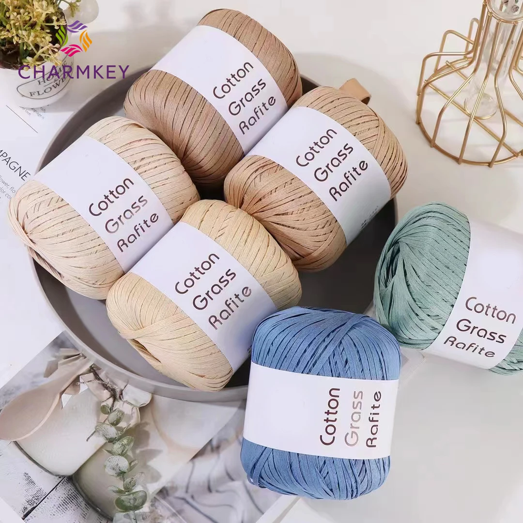 Горячая распродажа оптовая продажа по индивидуальному заказу 40 г за штуку разные цвета пряжа для ручного вязания 100% искусственная рафия короткая модная крючком