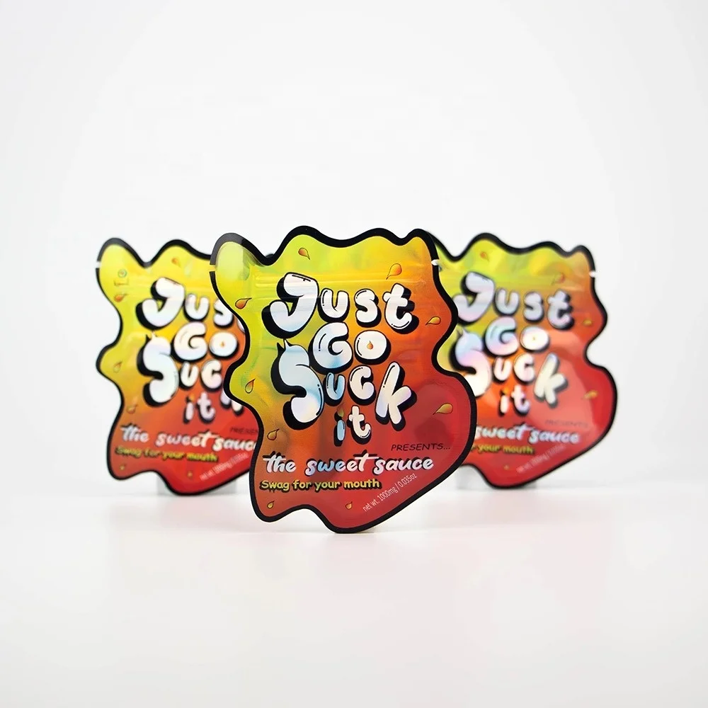 Голографический термоусадочный пакет на молнии, защищенный от запаха замок для еды для сладкого соуса, перерабатываемый на заказ, печатный 1000 мг, упаковка для конфет