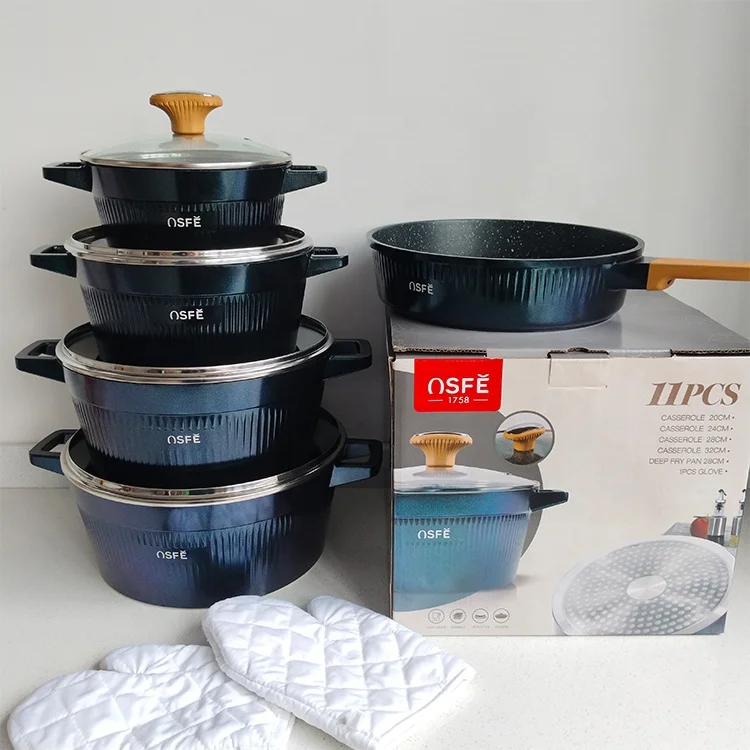 Composition: | 24cm frying pan/18cm sauce pan with galss lid/24cm casserole with lid/28cm deep frypan with lid/28cm grill pan |