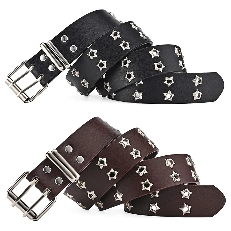 Женский Повседневный ремень в стиле панк 2024 Корейская версия украшенный звездами и воздушными глазами двойной ряд наличии