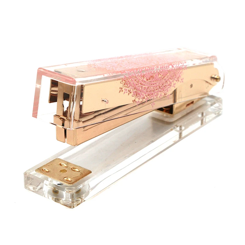 Поставки с фабрики в Китае 24/6 прозрачный степлер аксессуары для рабочего стола розовое кружево печатный узор Золотая полная полоска сделанный вручную металл