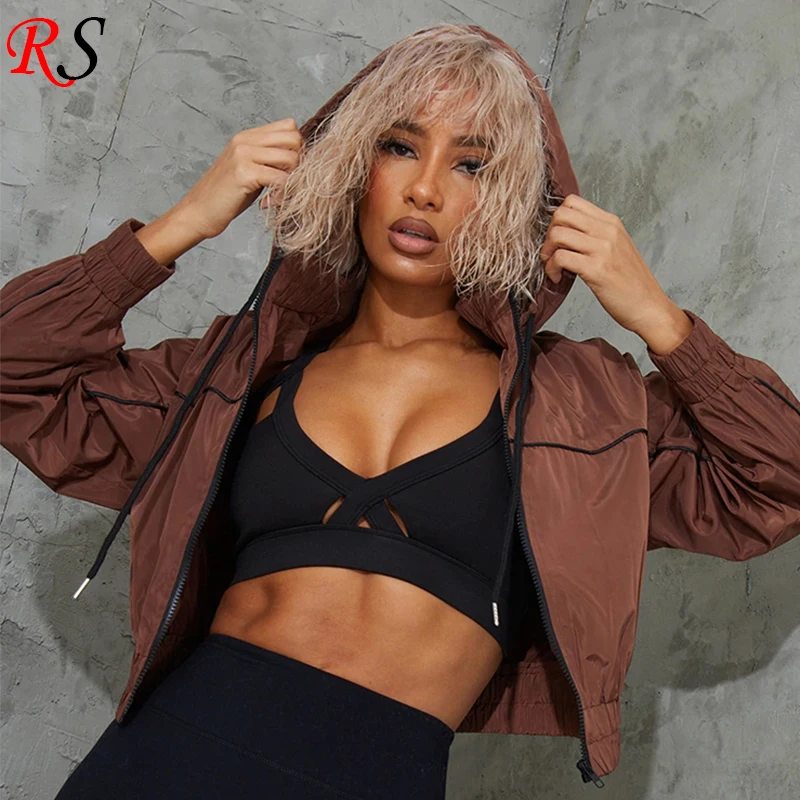 2024 Весенняя спортивная мода на молнии Толстовка ветровка черные укороченные женские куртки пальто
