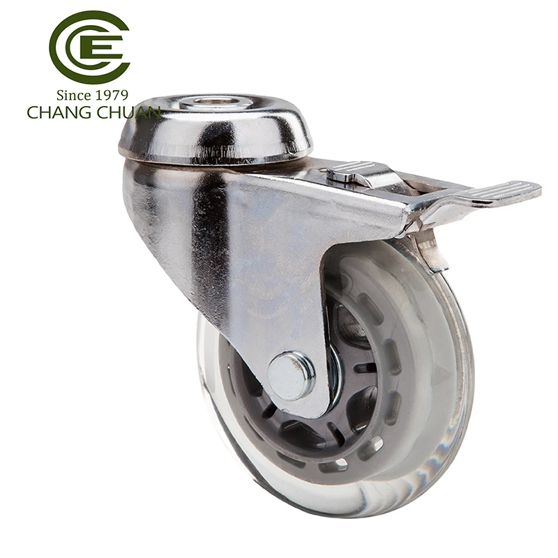 3-дюймовое Заводское производство прозрачное колесо из полиуретана бесшумные колеса полый стержень с тормозным колесом