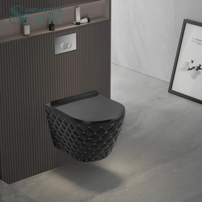 Name | Luxury design colored sanitary ware bathroom wall mount row hanging toilet bowl ceramic black and gold wall hung toilet |