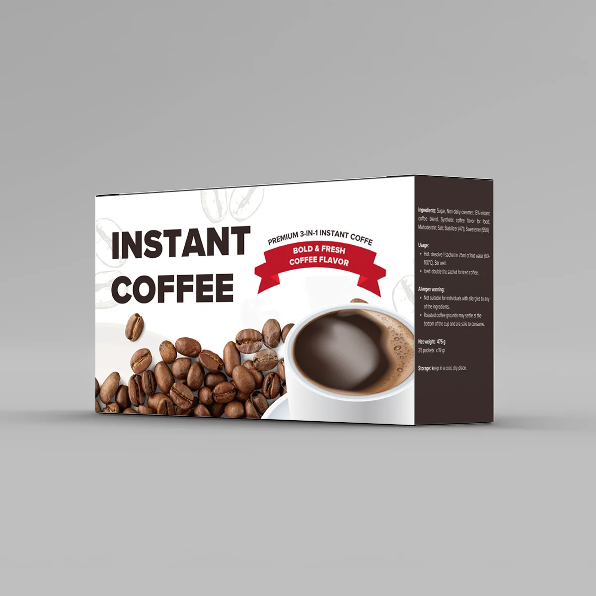 Appearance: Medium light roasted; Powdered granular powder allows a small amount of crystalline sequins Flavor: Obvious fragrance, obvious acidity, fine solubility; Drying Method: Brew the coffee in cold water and freeze dried ; Caffeine: 2.5~3.0