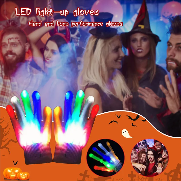 Светящиеся перчатки со светодиодами, аксессуары для танцевальных выступлений в баре на Хэллоуин