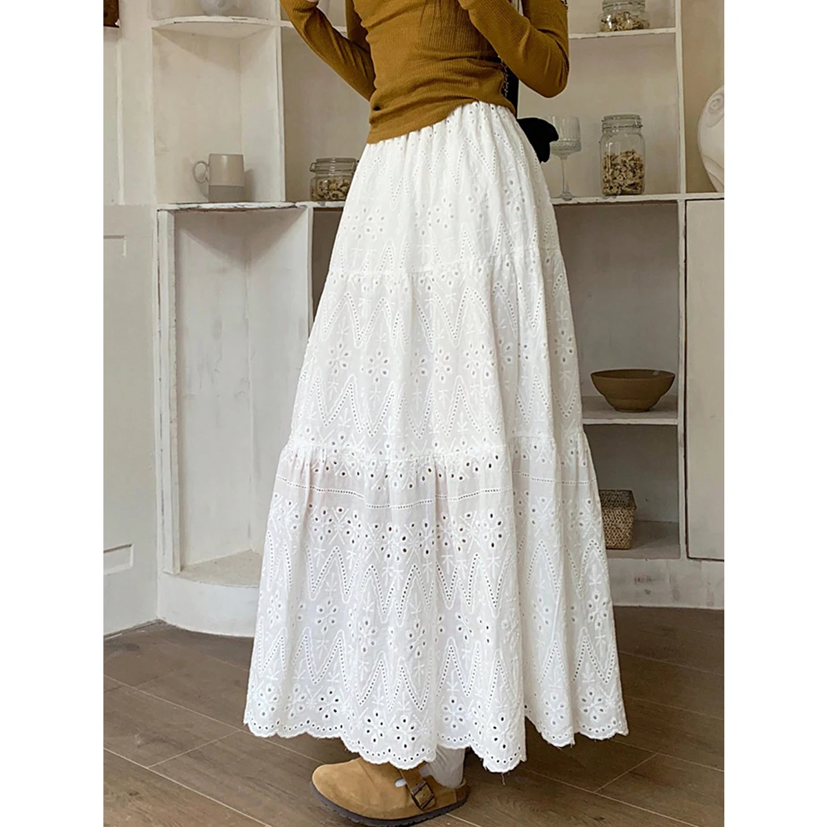 2024 новая весенняя модная женская юбка с оборками сетчатая высокой талией однотонная Повседневная плиссированная юбка-трапециевидная
