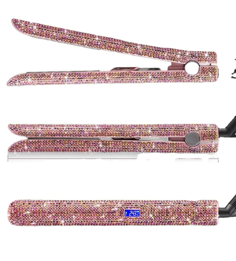 Ионный выпрямитель волос частная марка плоский утюжок для с блестящими кристаллами Розовый Выпрямитель
