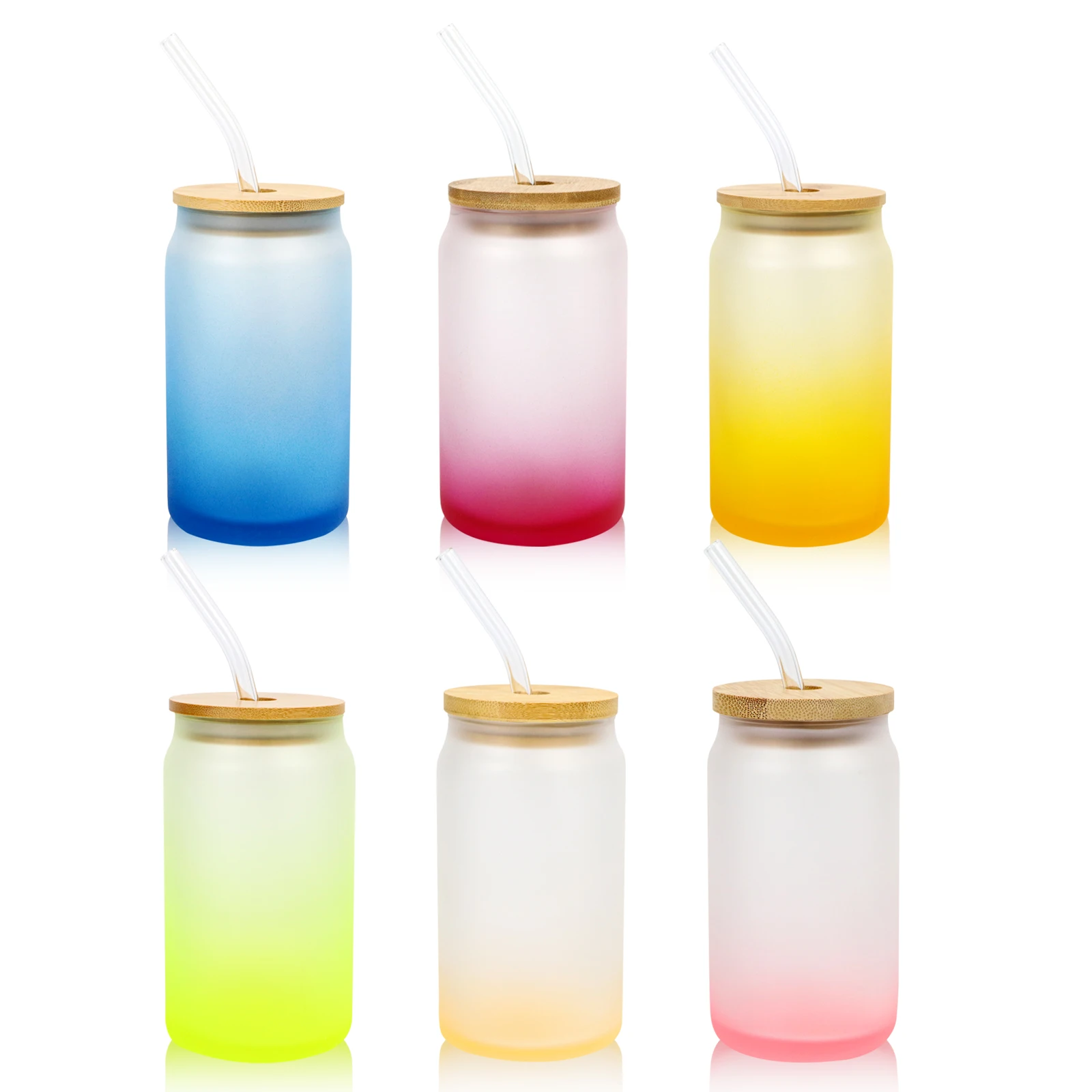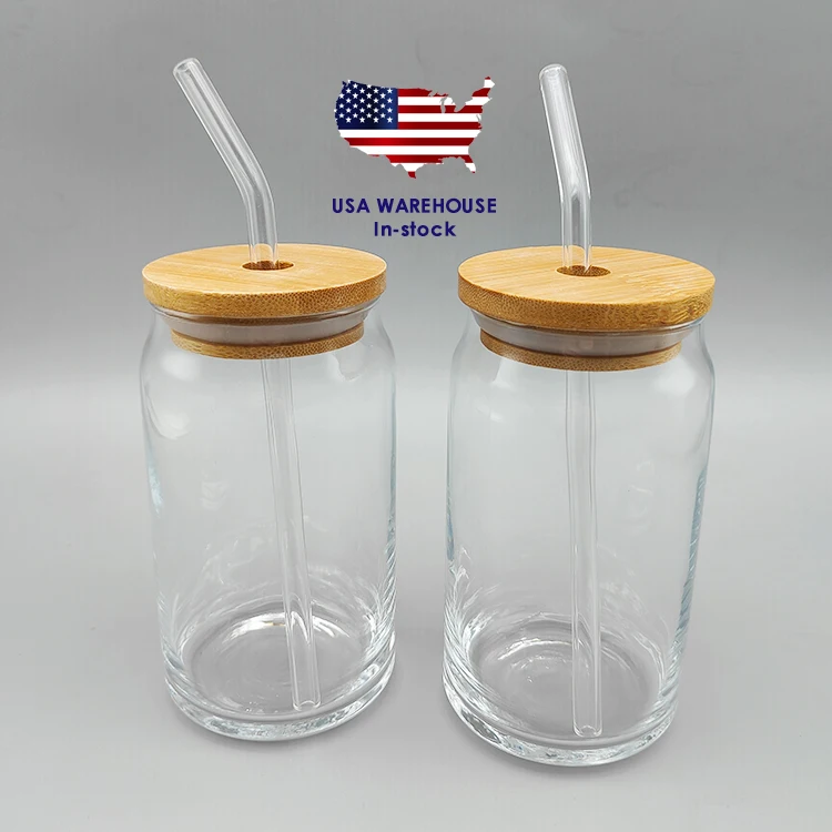 Матовая прозрачная сублимационная банка для пива в форме банка с бамбуковой крышкой и соломинкой, 12 унций, 16 унций