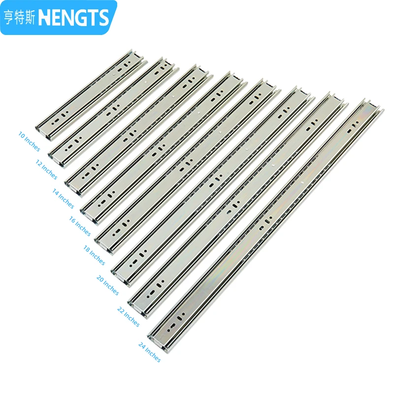 Furniture Hardware 45mm Full Extension Side Mounting Ball Bearing Drawer Slide 3 Fold Steel Rail for Cabinets Home Apartment Use