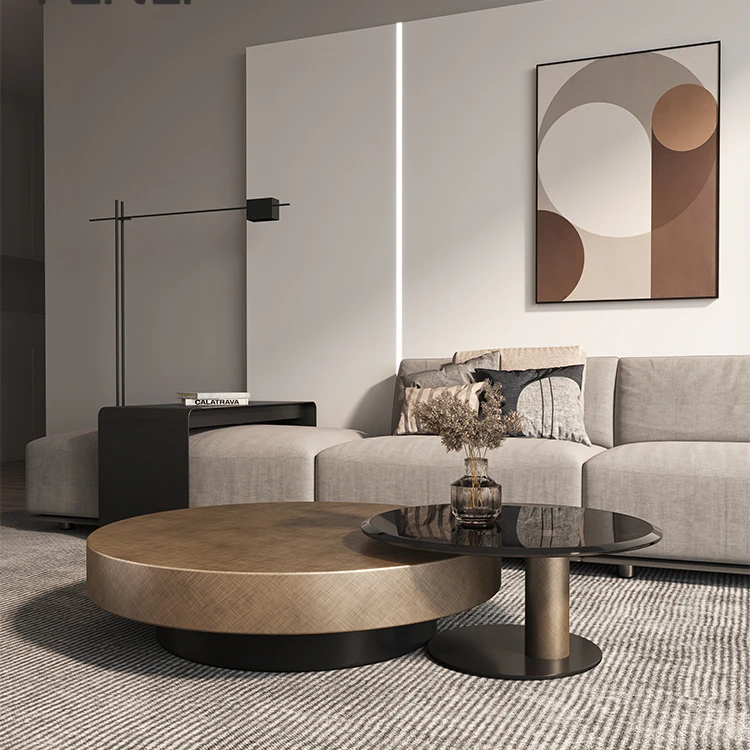 Горячая Распродажа роскошный золотой из нержавеющей стали современный круглый деревянный стол набор Обеденный домашний бар журнальный столик мебель 40 164,60 ₽ - 54 469,80 ₽