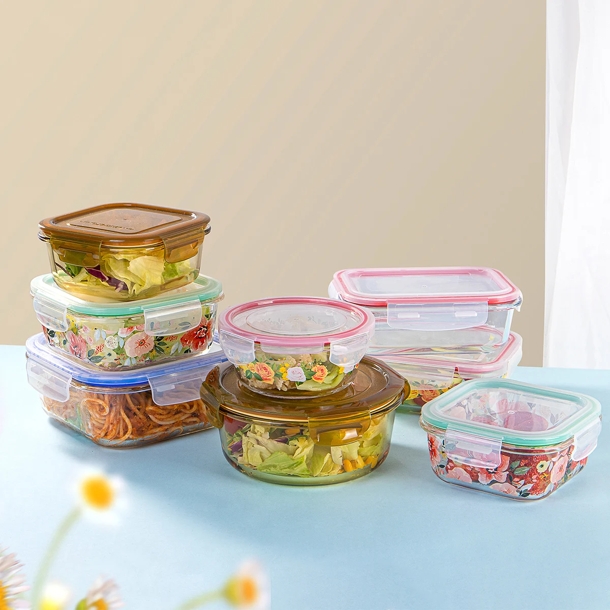Item | New design food storage containers with lid set borosilicate glass box lunch | ||||