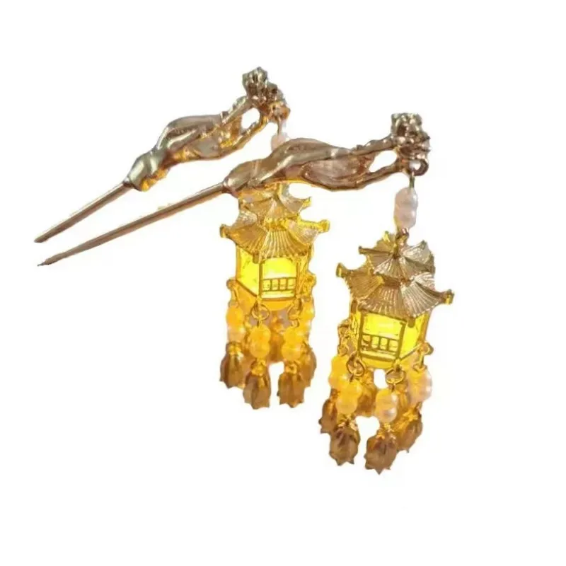 Древние украшения для волос Hanfu, фонарь, бахрома, заколка для волос в стиле ретро, дворцовые сказочные газовые украшения для волос, повседневные аксессуары