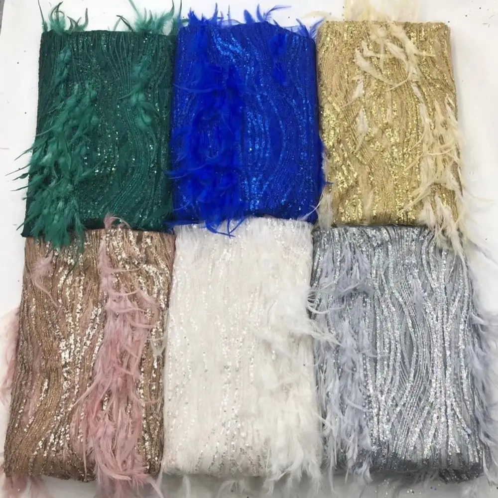Роскошное кружево 2021 Африканское французское перо Тюль кружевная ткань золотые блестки декоративная одежда несколько цветов