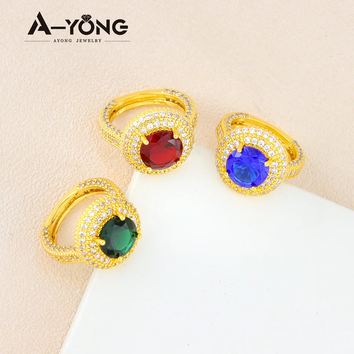 Оригинальная новая трендовая Женская палец кольцо Циркон Синий муассанит кольцо с покрытыем цвета чистого 24 каратного золота Дубай, свадебное кольцо, ювелирное изделие