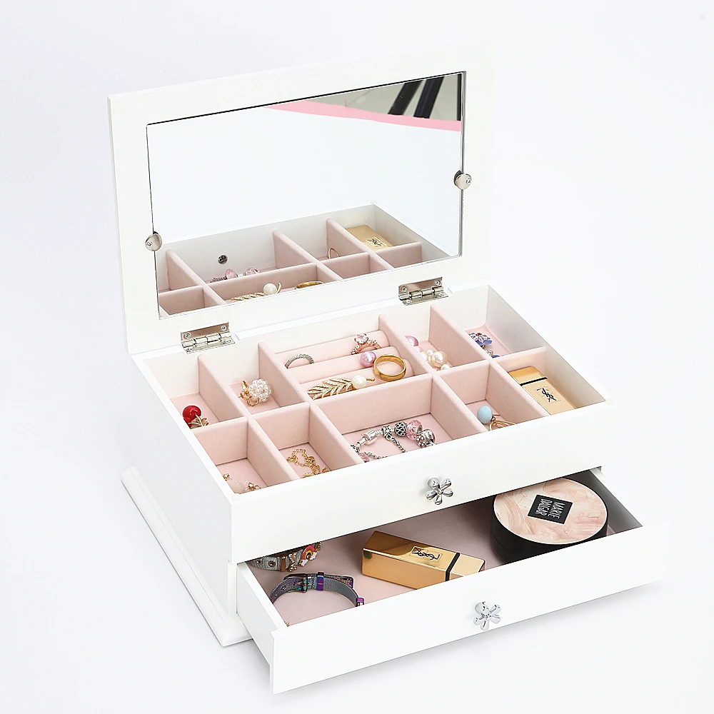Очаровательная деревянная коробка для упаковки ювелирных изделий с ящиком дам рождественский подарок шкаф хранения китайский завод в наличии