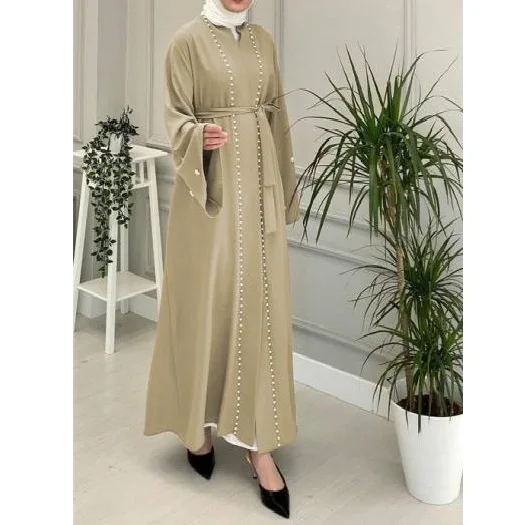 Products name | Drop Shipping 8 Colors Islamic Muslim Clothes Plain Dubai Front Open Abaya Coats Kimono Bubble Satin Robes Abaya Dress |