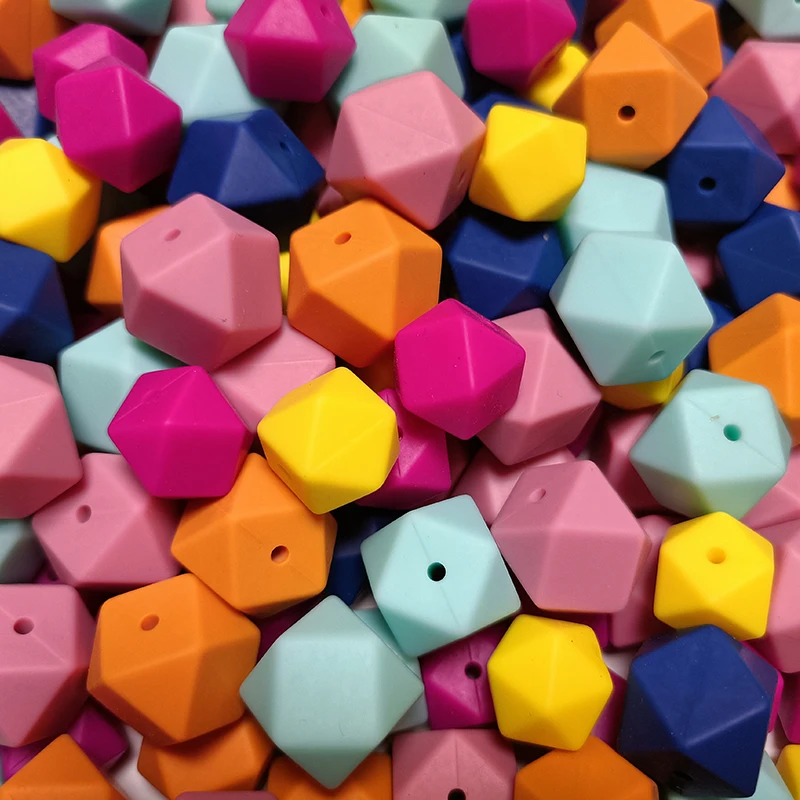 2024 оптовая продажа шестигранные силиконовые бусины 99 цветов Детские Прорезывания Зубов Бисер Bpa бесплатно для изготовления украшений