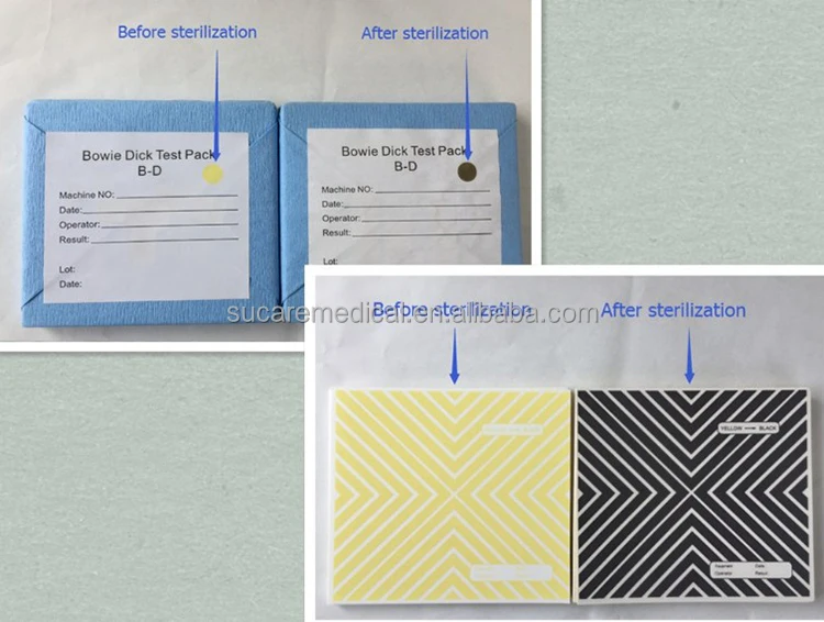 Bowie Dick Test Pack | 125*115mm *15mm | Yellow to Black | 1pc/PE bag, 100pcs/ctn 55*25*30cm, 9.5kgs | 1000pcs | 15-20days |