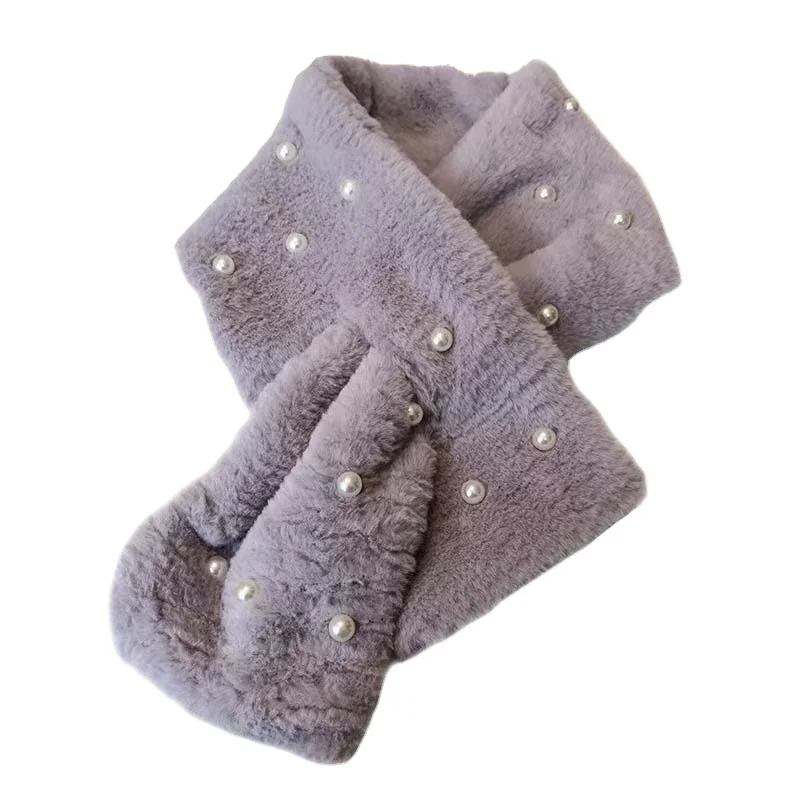 Оптовая продажа Новое поступление плюшевый перекрестный воротник шарф воротник из искусственного кроличьего меха Зимний теплый плотный шарф женский подарок