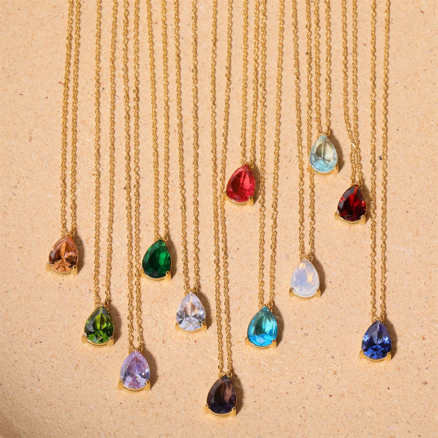 Титановая сталь капля воды циркон камень рождения печь вакуумное гальваническое покрытие 18 карат золотое ожерелье