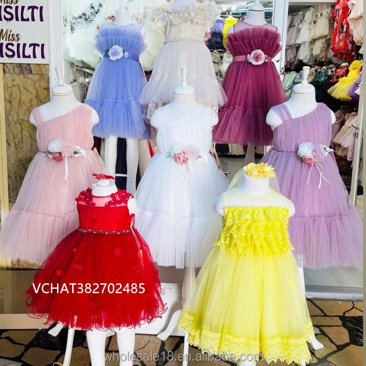 Лучший новый продукт 2024 красочные маленькие шарики тюлевые платья для девочек кружевное платье Детские