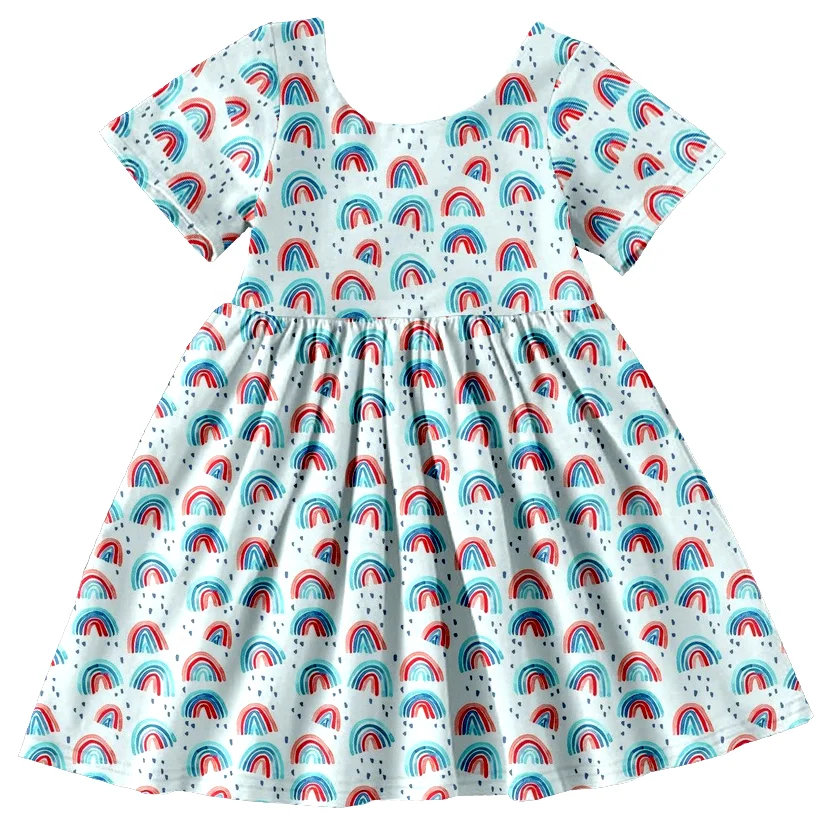 Оптовая продажа Детская Хлопковая одежда в стиле милитари с американским флагом платье 4 июля