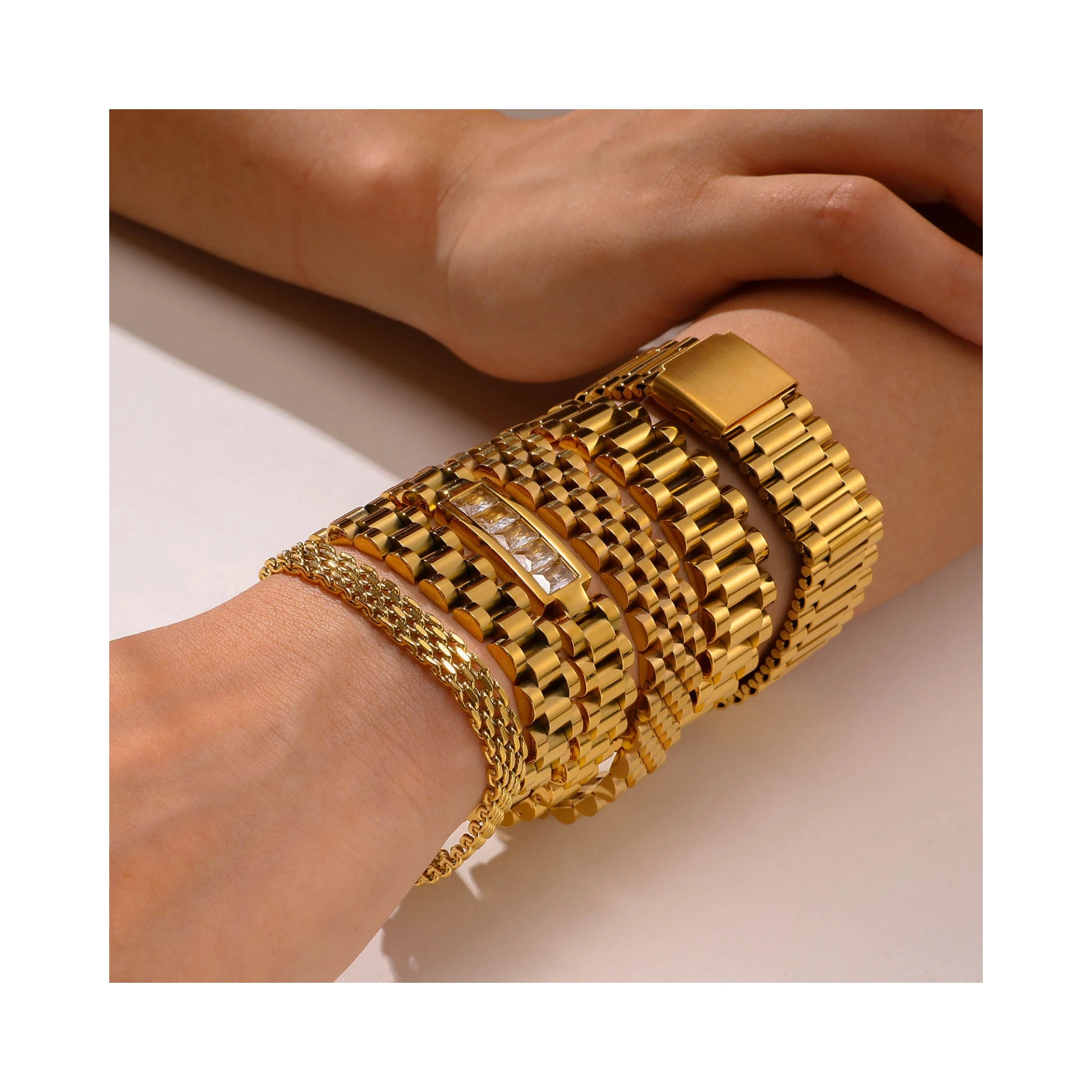 Высокое качество ювелирные изделия из нержавеющей стали геометрическое позолоченное звено цепи браслет для часов женщин и мужчин 188,71 ₽ - 222,41 ₽