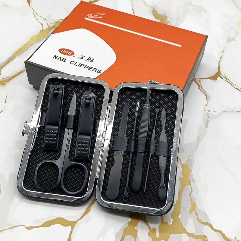Черные плоскогубцы для ногтей Маникюрный Инструмент набор красоты 7 шт. черный подарочный