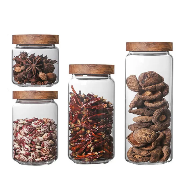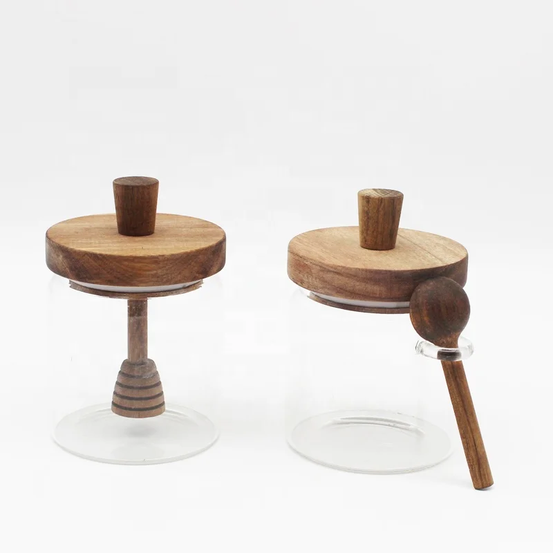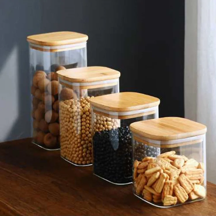 Новая дизайнерская банка из боросиликатного стекла с бамбуковой крышкой для меда термостойкая прозрачная пустая стеклянная хранения соли 16 унций
