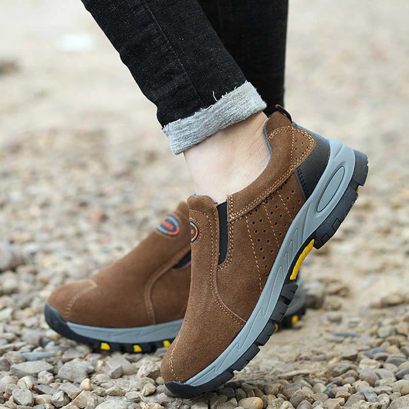 Гладкие австралийские удобные безопасные походные ботинки из бычьей кожи без шнурков