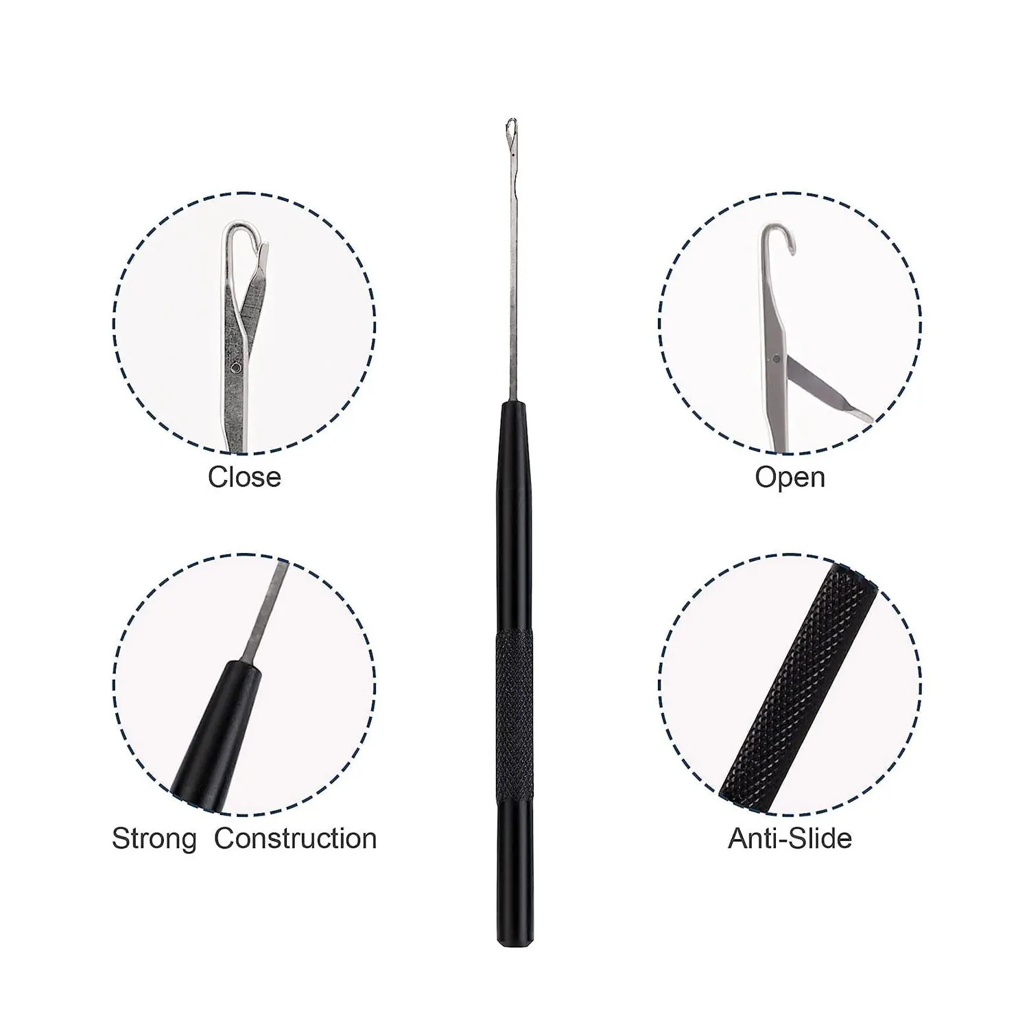 Высококачественный бюджетный металлический инструмент для наращивания волос с петлями, инструмент для вытягивания силиконовых микро-бусинок и перьев