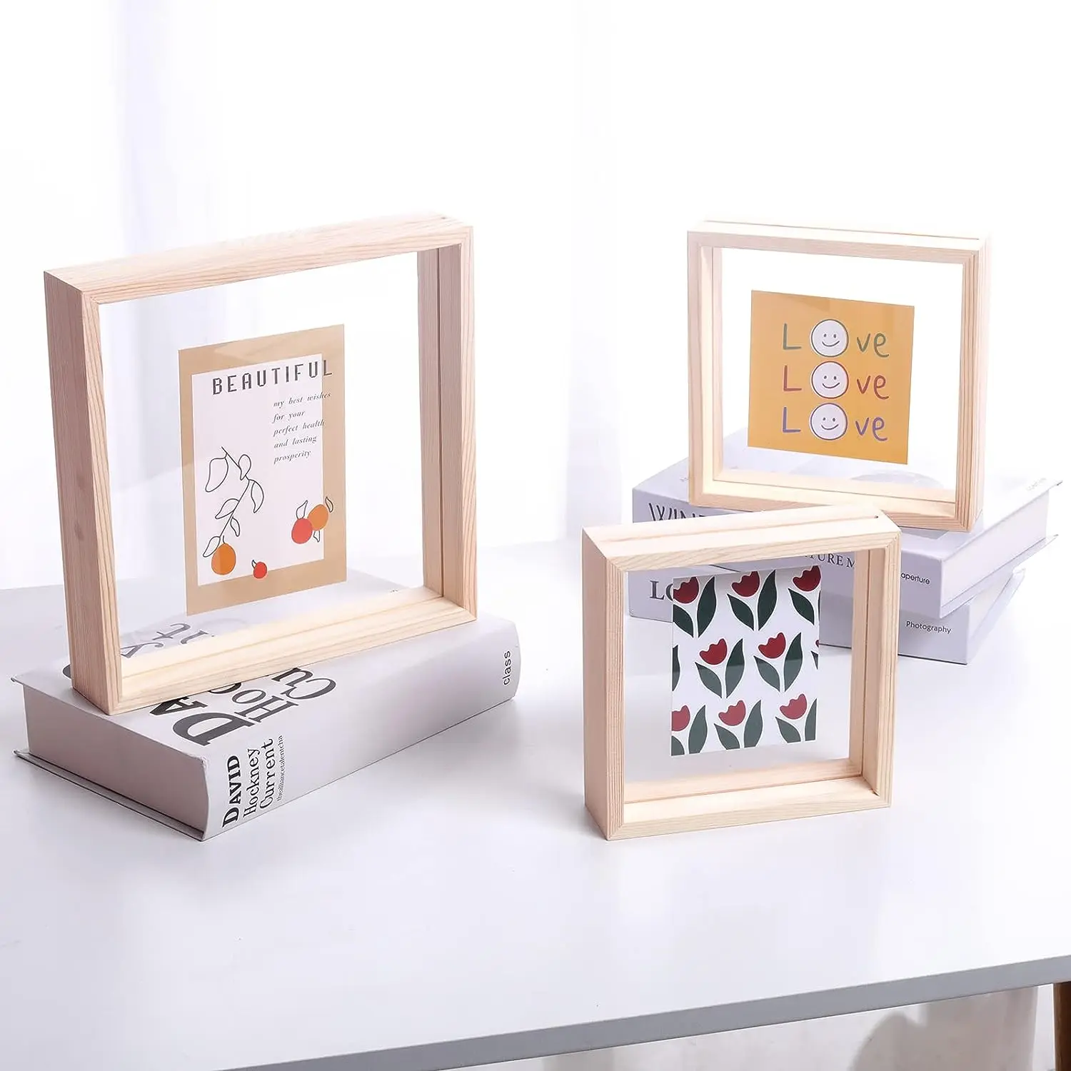 Индивидуальные произведения искусства 9x9 12x12 дюймов коллекция образцов двухсторонняя Стеклянная фоторамка из бука