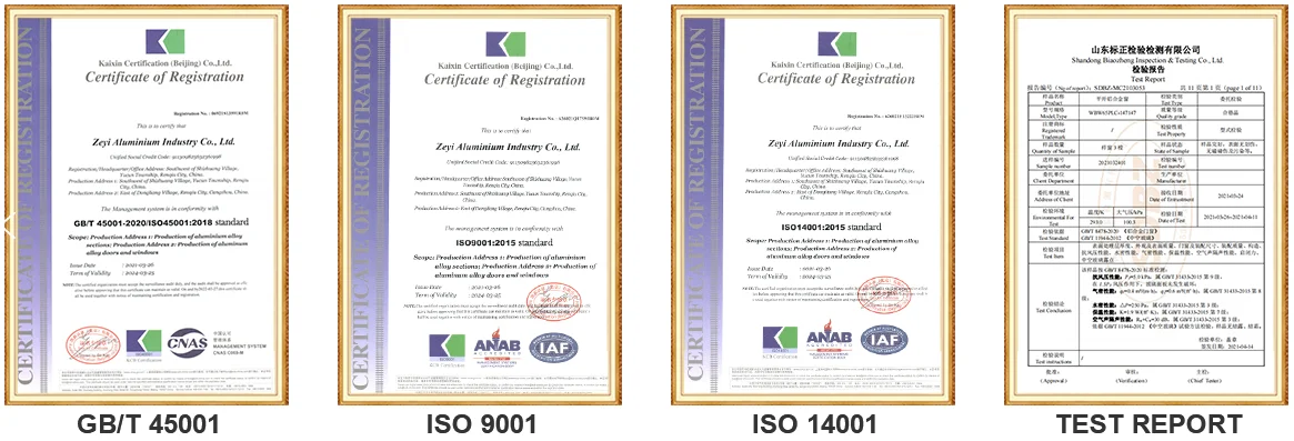 Zeyi Aluminum Co., Ltd. has been established for more than 20 years, it has eight extrusion production lines, specialized in window and door profile and other construction profiles, annual production capacity reaches 20 thousand tons. We can make different surfaces of profiles, such as powder-coated profile, anodized profile, wooden grain transfer printing profile, OEM, and ODM service is acceptable. Our “YOUSHUO” brand window and door system factory can make many kinds of window and door systems, such as casement window and door, sliding window and door, folding window and door, etc. We also have close cooperation with accessories factory and glass factory to provide you with high quality and low price products. We are qualified with an I S O 9 0 0 1 quality system certificate.