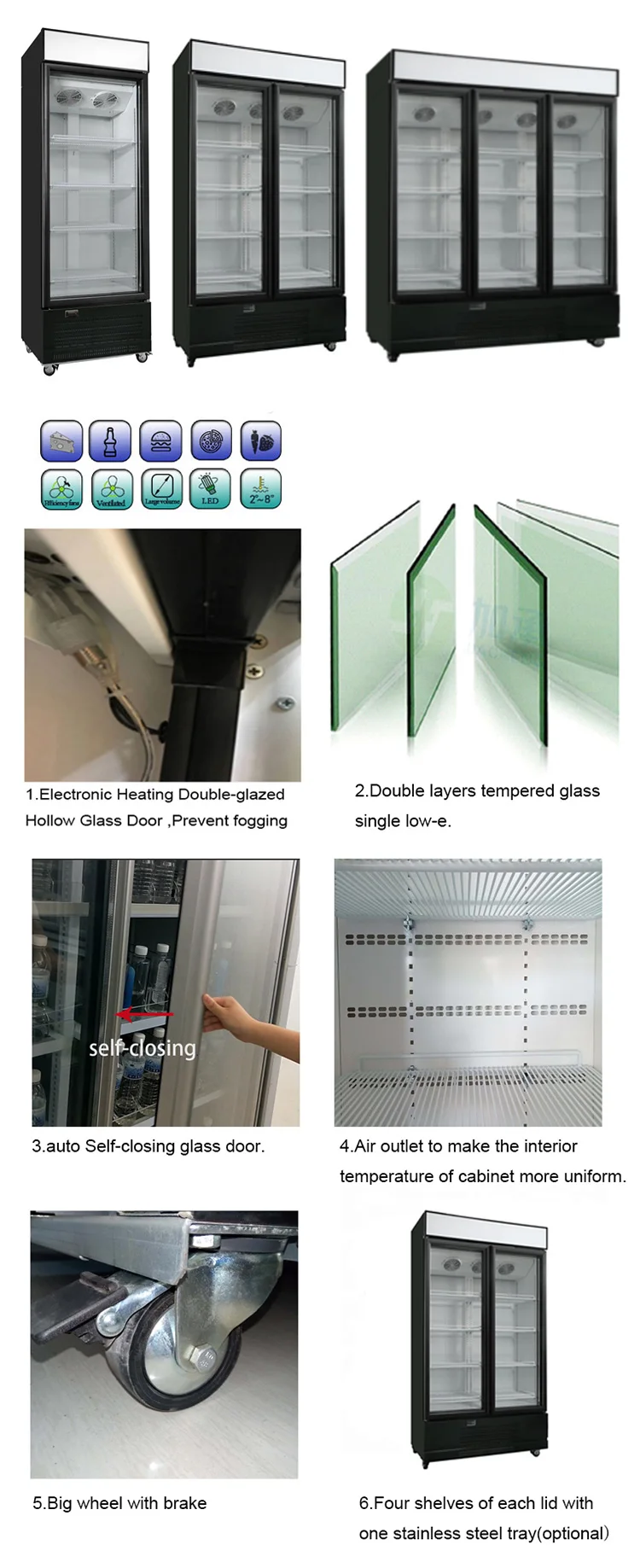 A:All our refrigerator(more than 80%)uses either 404A or 134A(20%) environmentally-friendly refrigerants. Q:What is the distance between your mutildeck? A:All of the shelves in our products are adjustable to suit your needs.