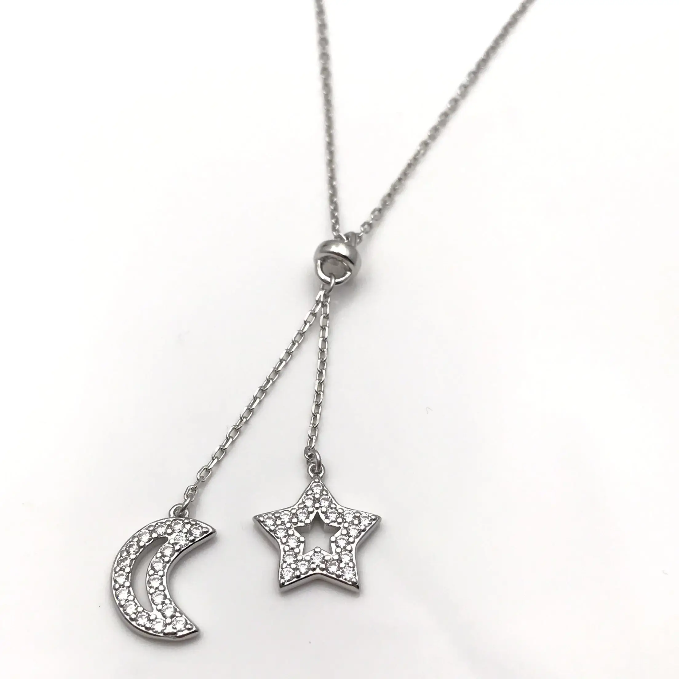 Женское винтажное 925 колье из стерлингового серебра с цепочкой родиевое Гальваническое пятиконечное модное кулон со звездами и Луной