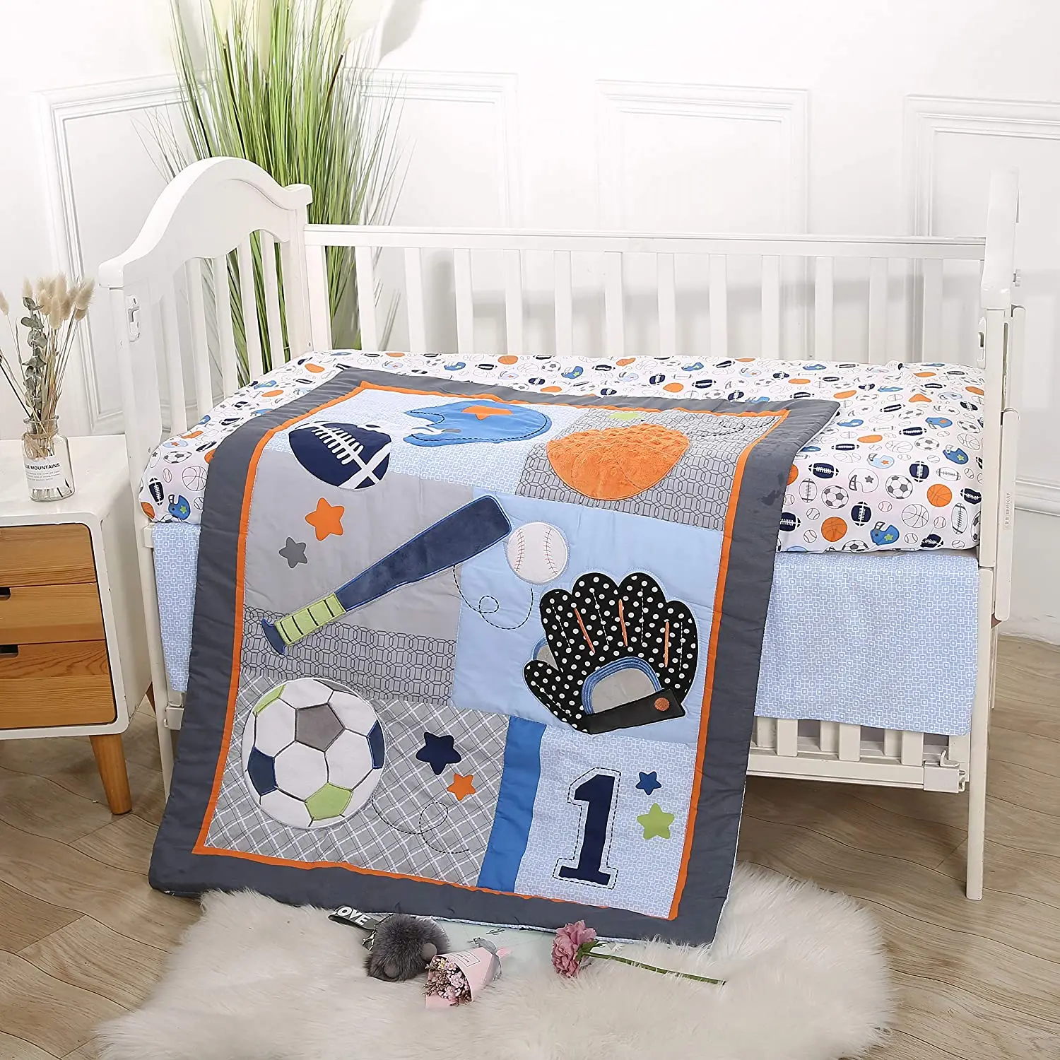Комплект постельного белья для маленьких мальчиков голубое постельное белье детской кроватки комплект из 7 предметов Мягкое хлопковое Спортивное с мячиком