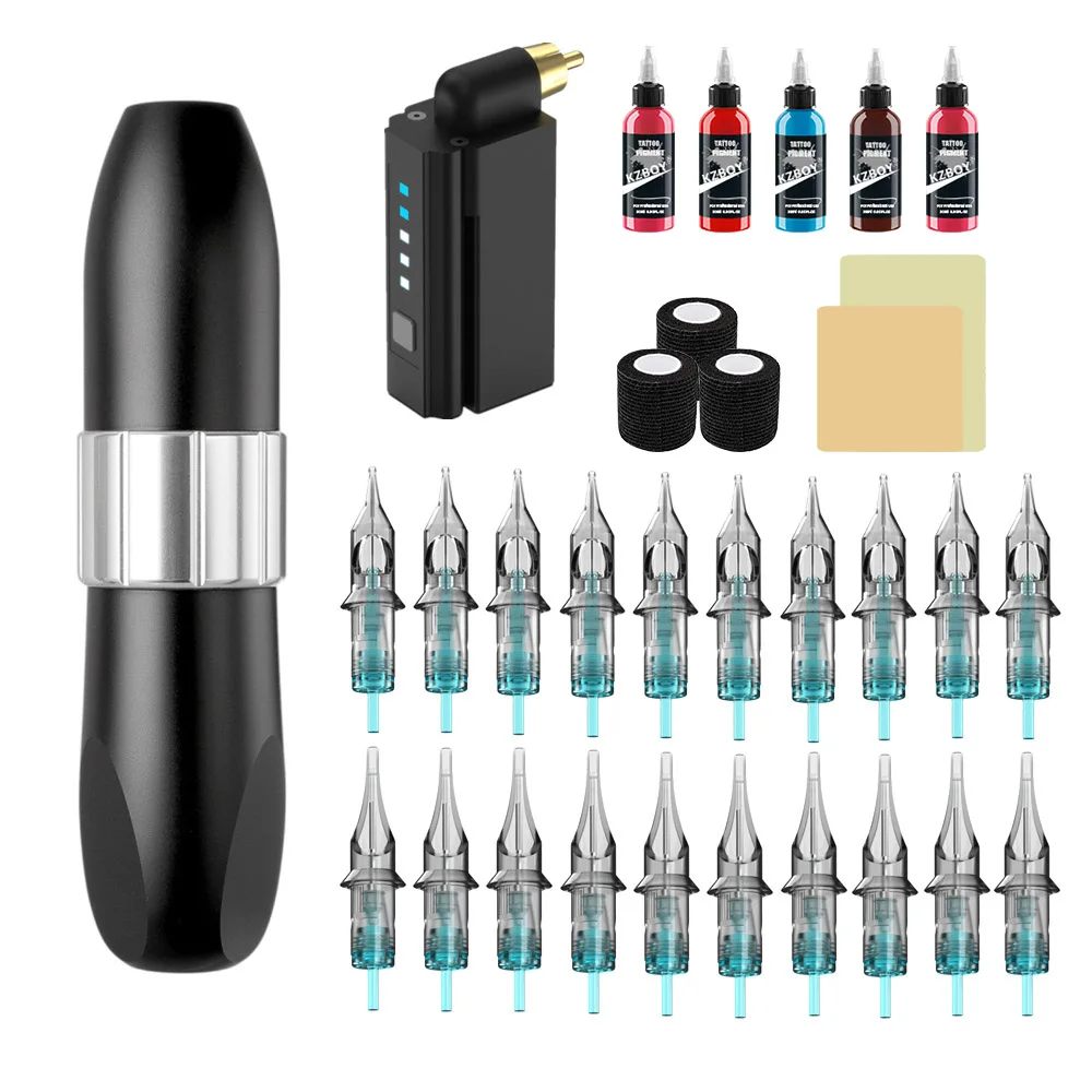 Packing | Lightning Wireless Tattoo Pen+Spare Battery+20pcs Cartridge Needle+RCA Connector+RCA Line+Practice Leather + Gloves + Bandages |