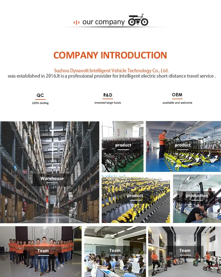 Suzhou Dynavolt Intelligent Vehicle Technology Co., Ltd, founded in 2016, is a professional electric scooters and bicycles manufacturer located in Kunshan City, 30kms west to Shanghai. Our products range includes folding E-bike, mountain E-bike, fat bike, snow E-bike, city E-bike, rental E-bike, e-scooters, electric tricycle and four-wheel electric scooters. With the ISO9001 quality management system, SGS&CE certificate, our factory, equipped with the most advanced manufacturing process and machines in the industry, currently have more than 50 employees and 5,000 square meters workshop, the annual production capacity is more than 300,000 pieces.