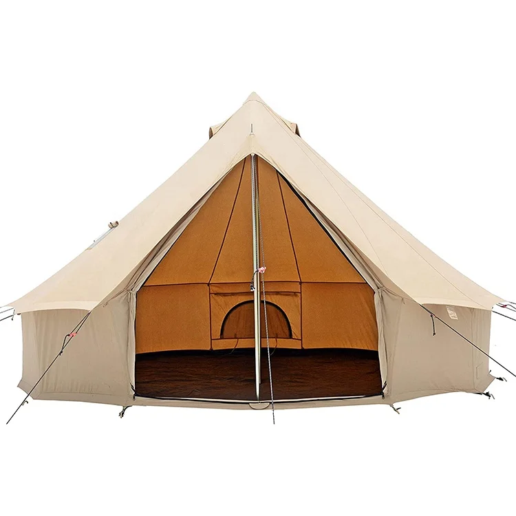 Оптовая продажа с фабрики большие палатки для кемпинга на 4 человек 280 г водонепроницаемая уличная палатка колокольчиком из хлопчатобумажной ткани