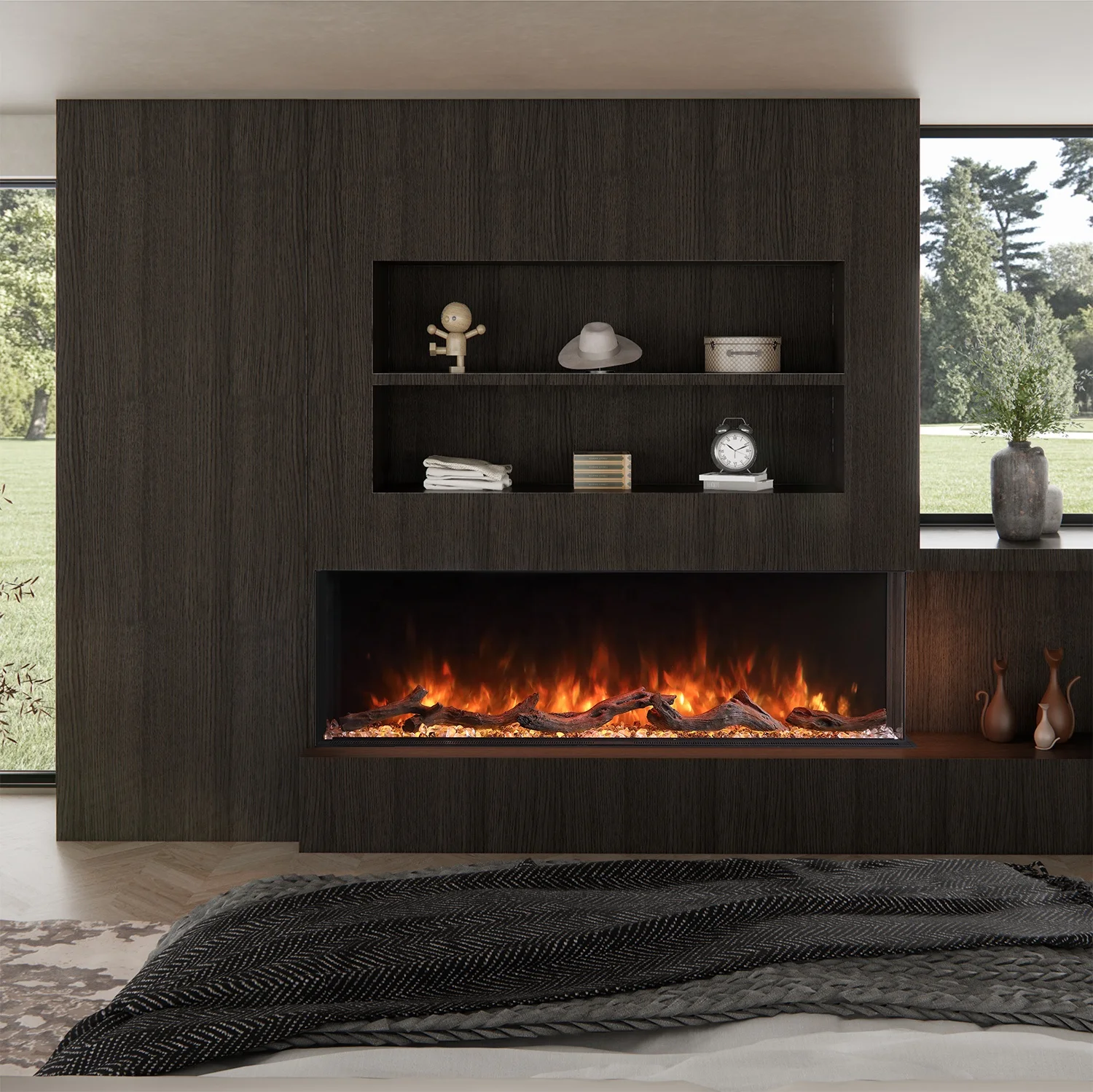 Oak finish wooden mantel electric fireplace heater with back lits