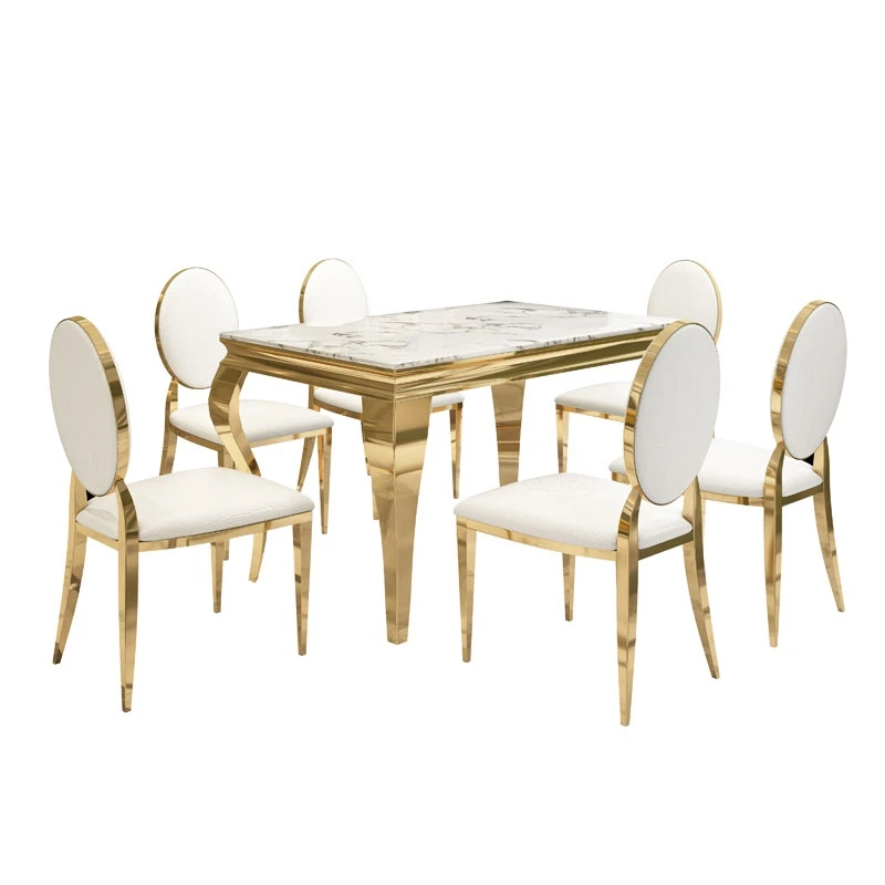 Оптовая продажа свадебные столы комплекты столовой домашняя мебель мраморный камень столешница Золотая рама из нержавеющей стали современный роскошный обеденный стол