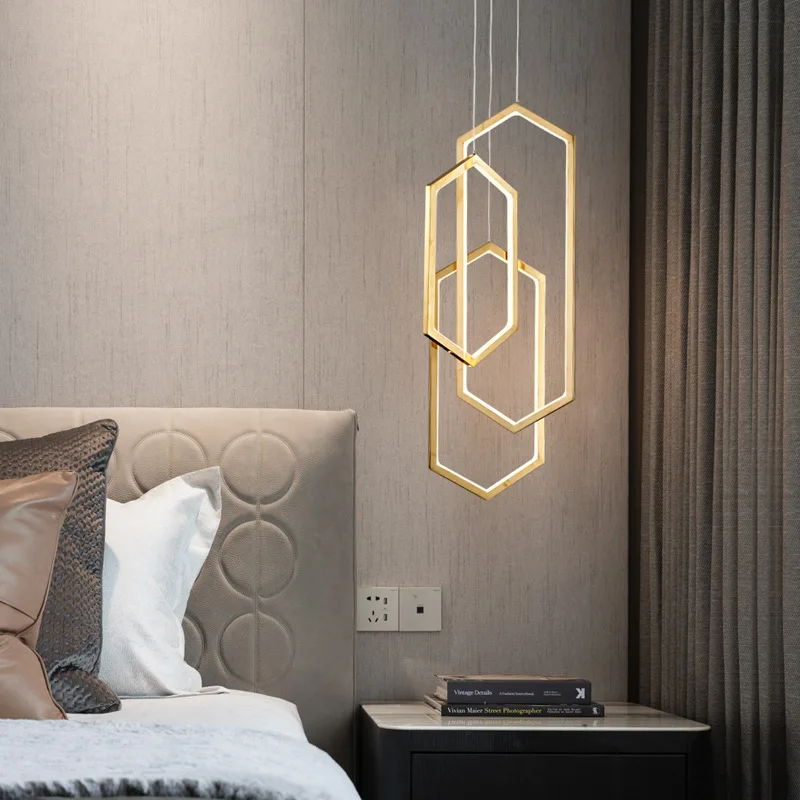 Современный подвесной светильник в скандинавском стиле минималистская гостиная столовая бар спальня холл лестница шестиугольная комбинированная люстра