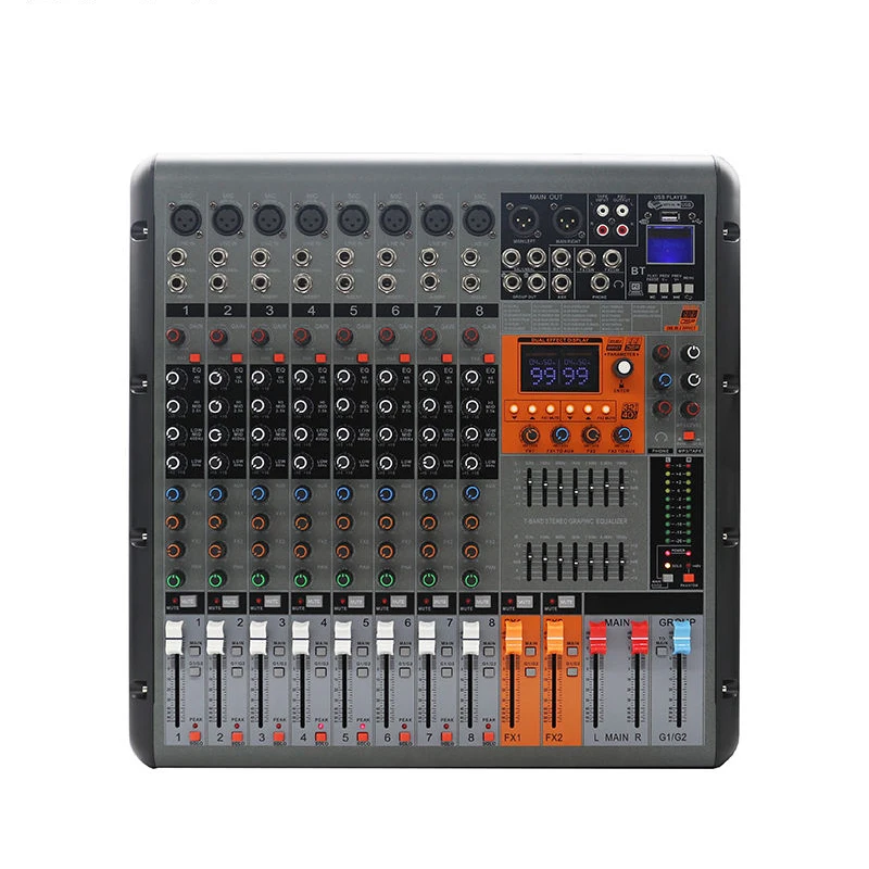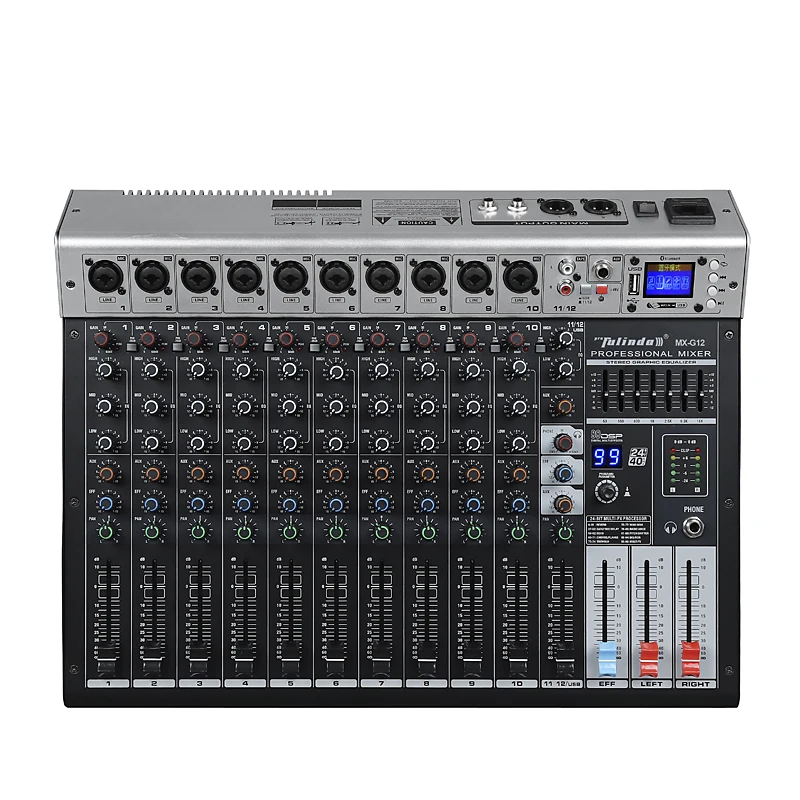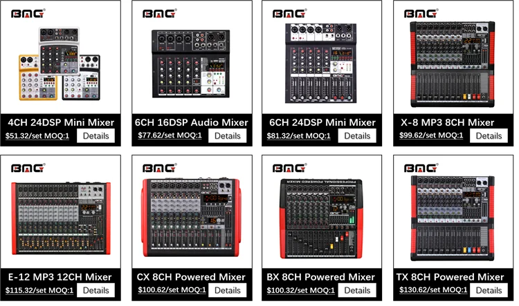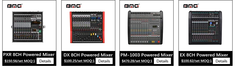 3. BT 4.0 and DSP effect capability: Users can transfer music from pad, mobile phone, and computer through BT, and perform music mixing. Built-in one-button control mode, you can quickly switch play, pause, switch songs and music connection modes. Bomge 4-channel professional mixing console has built-in 24-bit digital effect processor, which are soprano, bass, child's voice, 7-level delay, 14-level delay and echo.