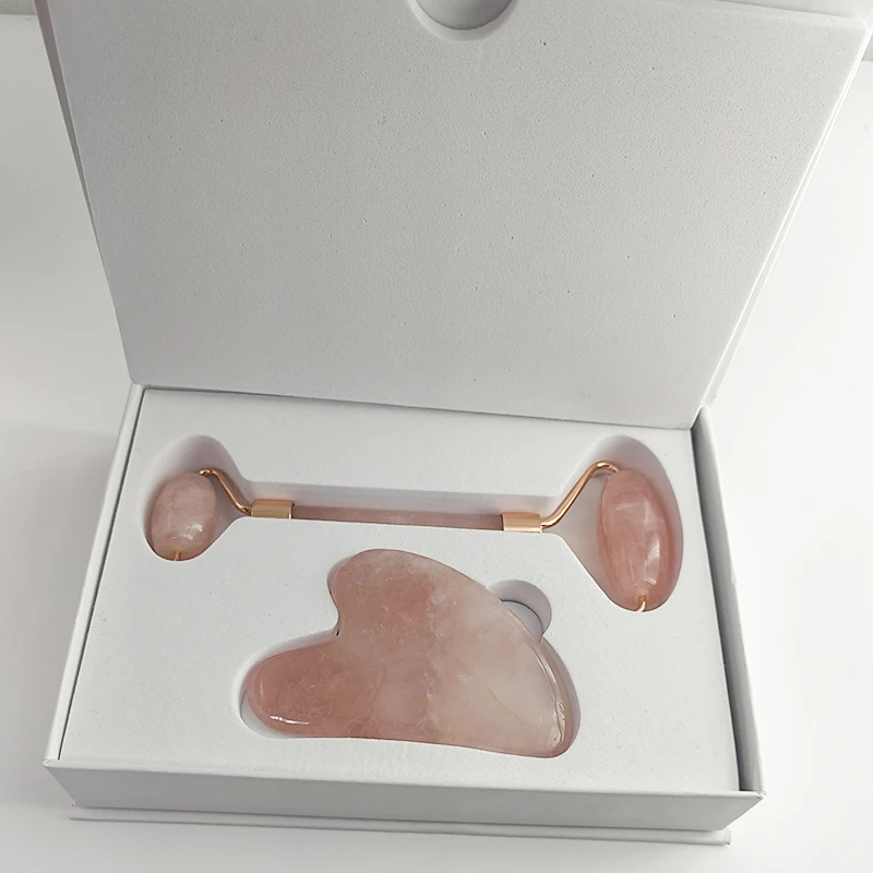 Массажер Aurora Luxe, розовый кварц, нефрит, ролик для лица против морщин, отечности, снимает давление синуса