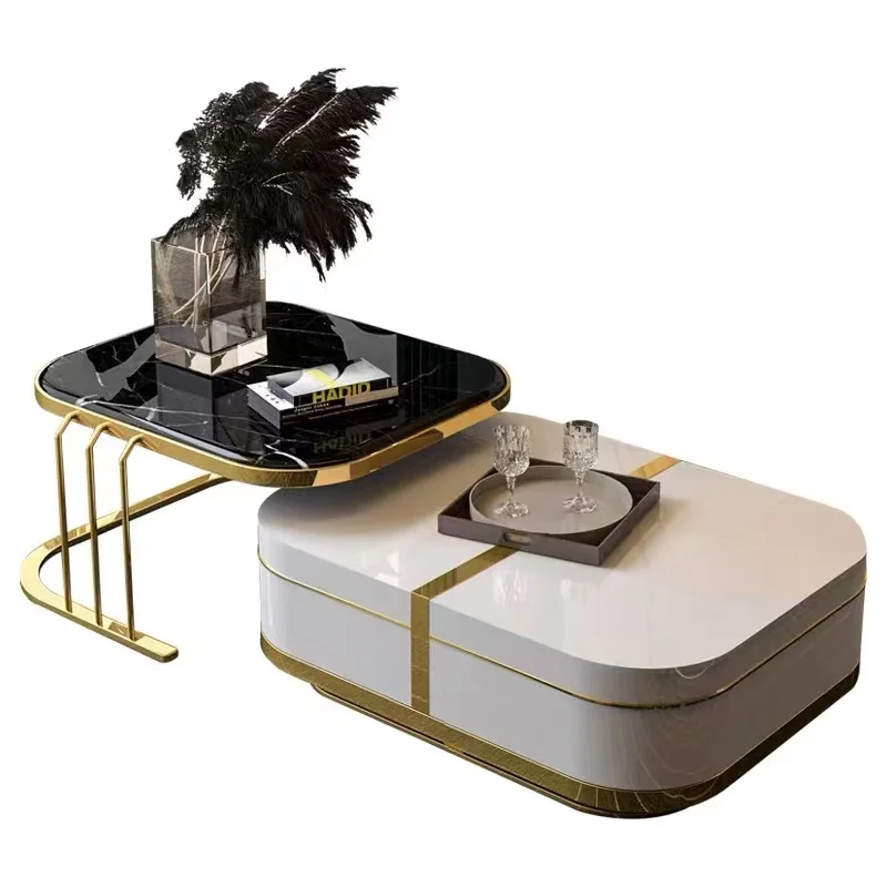 Роскошный стеклянный журнальный столик с мраморной столешницей из нержавеющей стали