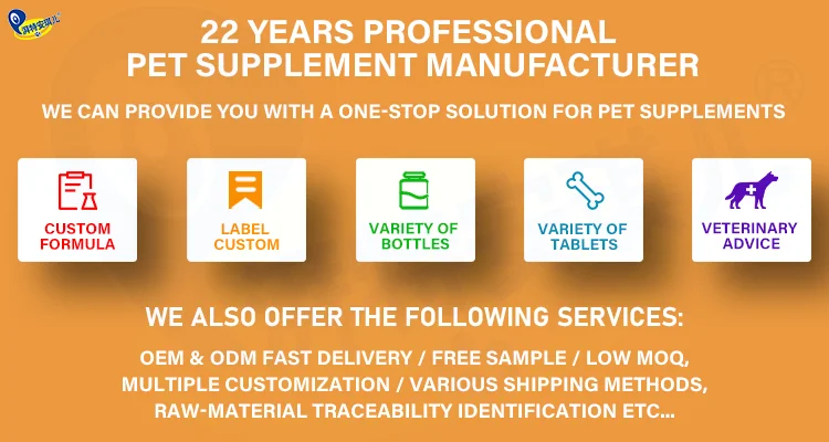 Main Ingredients: | Pea Flour, Palm Fruit Oil, Garbanzo Flour, Tapioca Flour, Flaxseed, Fish Oil, Algae, Natural Chicken Flavoring, Sunflower Lecithin, Cod Liver Oil, Coconut Glycerin, Ascorbic Acid (Vitamin C), Vitamin E (D-Alpha Tocopherol), Zinc Proteinate, Sorbic Acid (Natural Preservative), Rosemary Extract, Mixed Tocopherols, Biotin. Flavor Vary The above ingredients are combined according to different functional requirements, This product not including all raw materials and not limited to the above raw materials | |