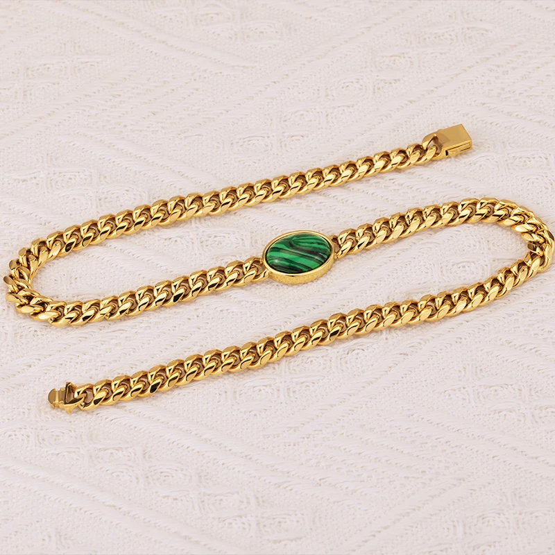 Кубинская цепочка из нержавеющей стали, Ювелирное Украшение в стиле хип-хоп, 18 карат, позолоченная цепочка из миами, кубинская цепочка, инкрустированная агатом, ожерелье, браслет, комплект украшений