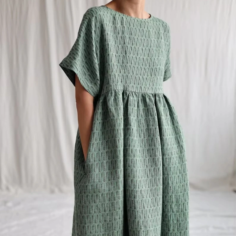 2024 летнее повседневное высококачественное роскошное кружевное льняное платье с вышивкой из льна и хлопка принтом для женщин Лето карманами