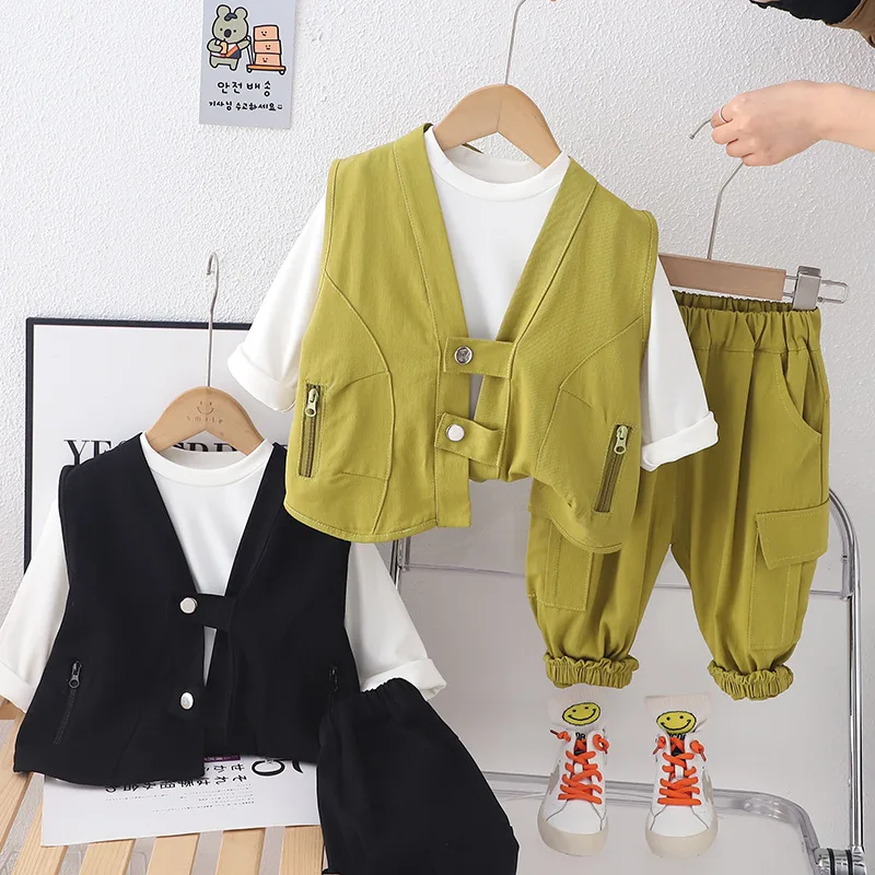 Новинка 2024 осенняя одежда для детей Весна 3 шт. хлопковые повседневные комплекты одежды мальчиков